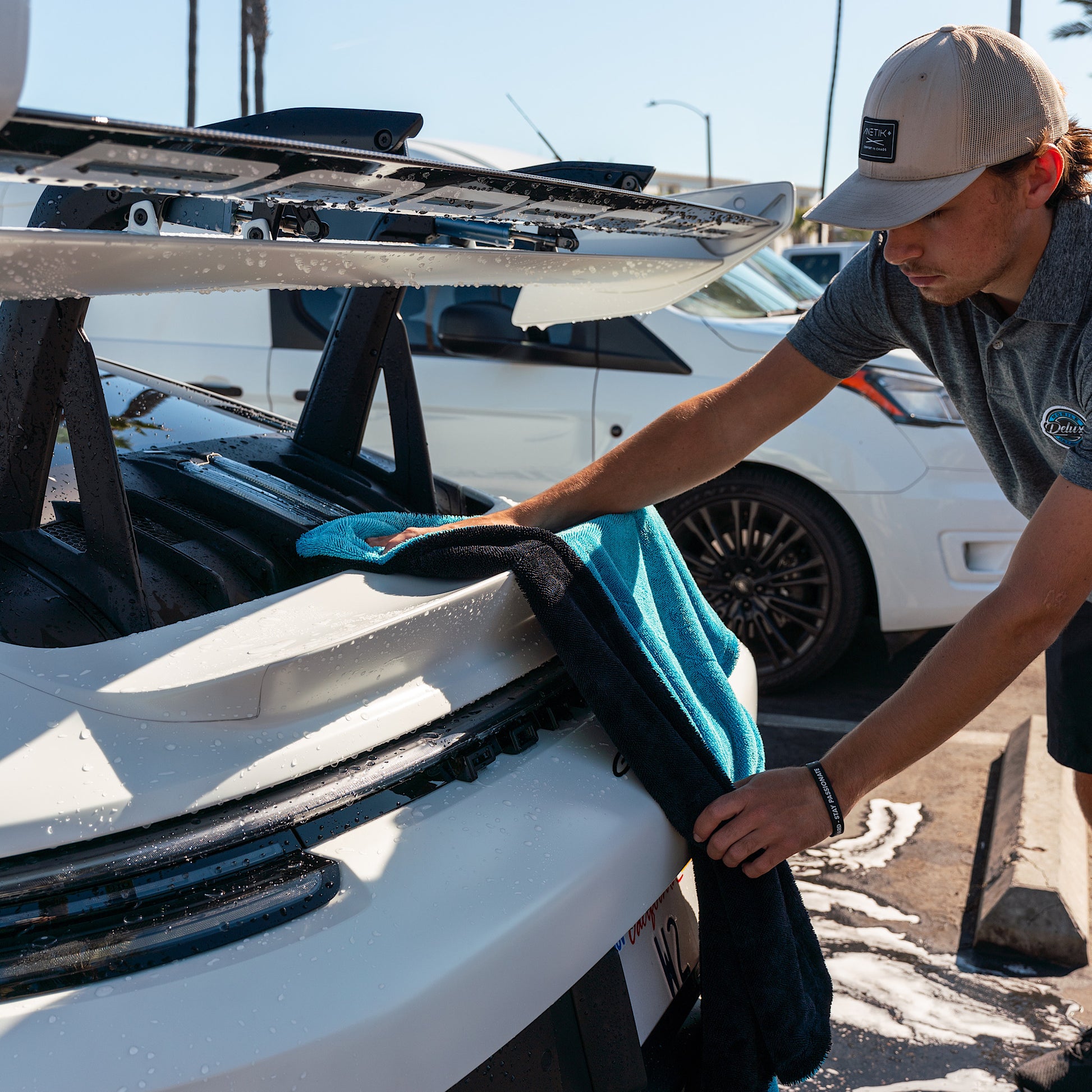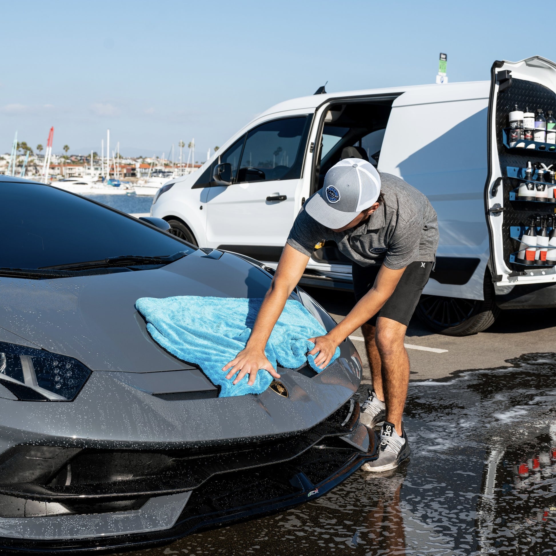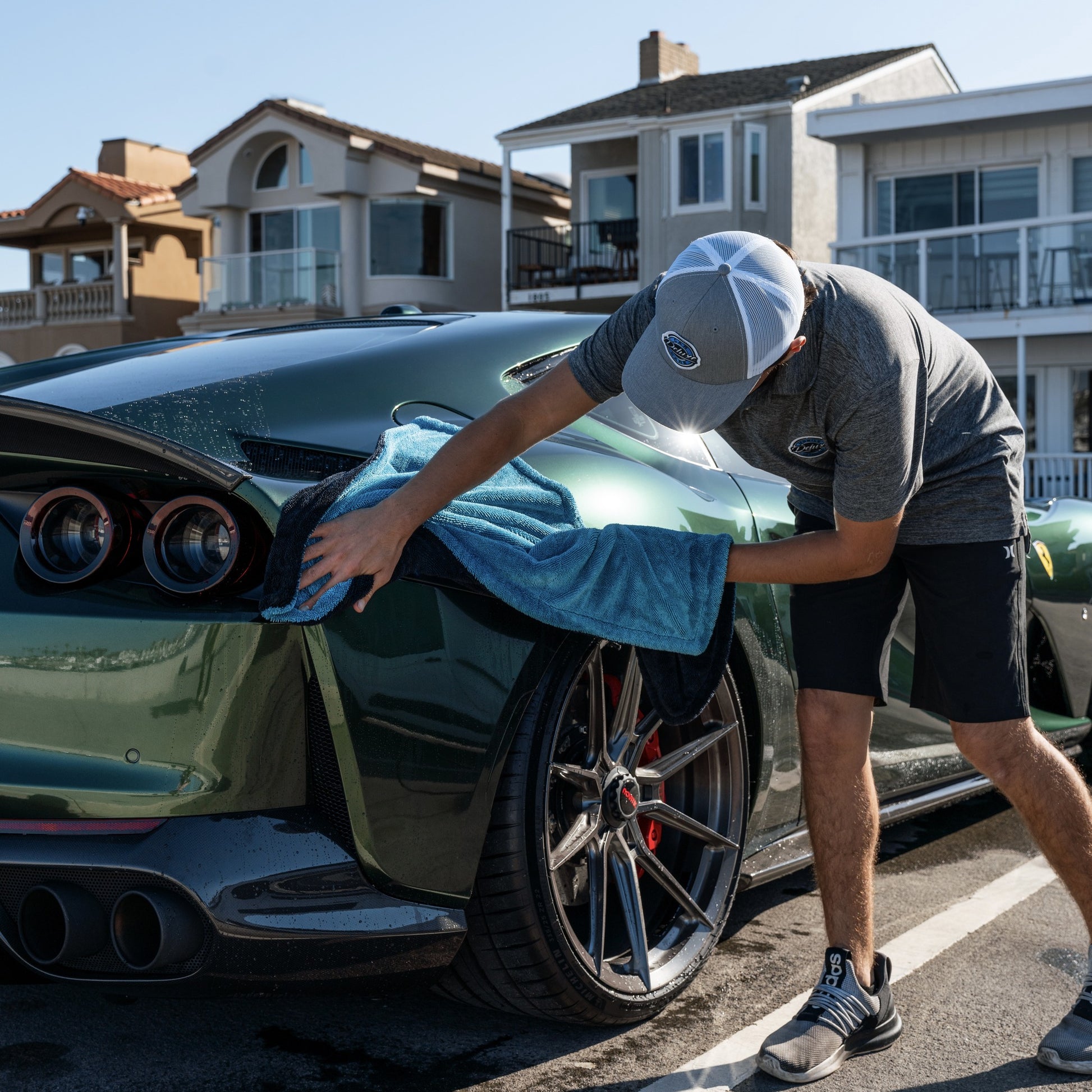 Introducing the Deluxe Car Care XL Microfiber Drying Towel - the ultimate drying solution designed by professional detailers for exceptional absorbency and a flawless finish. With a generous 24" x 36" size and a plush double sided 1400 GSM, this towel quickly wicks away water without streaks, scratches, or lint. Made with premium, ultra-soft microfiber, its gentle on all surfaces, making it ideal for delicate paint finishes, glass, wraps, PPF, and much more. Crafted to withstand multiple uses and washes, the Deluxe XL Drying towel is a must-have for anyone serious about car care.